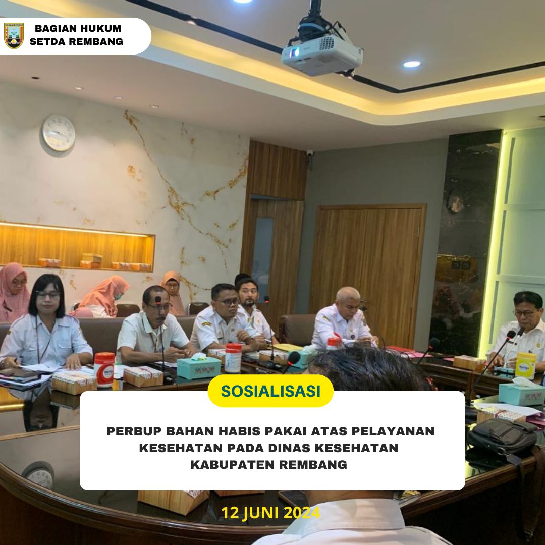 Rembang - Bagian Hukum Setda Kab.Rembang melaksanakan Sosialisasi Peraturan Bupati tentang Bahan Habis Pakai Atas Pelayanan Kesehatan pada Dinas Kesehatan Kabupaten Rembang, Rabu (12/6/2024).